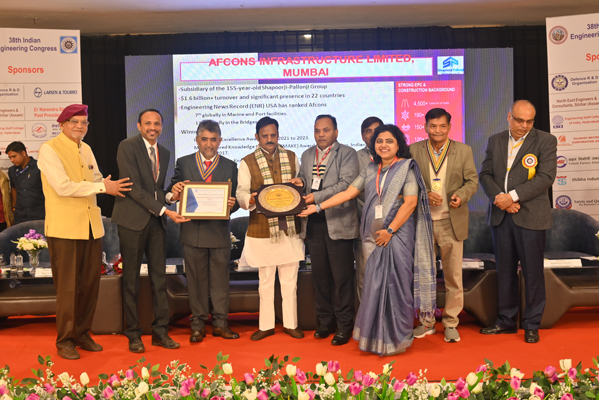 Afcons received IEI Industry Excellence (Platinum) Award 2023 for outstanding performance with high order of business excellence at the 38th Indian Engineering Congress organised by The Institution of Engineers (India). IEI Industry Excellence Award has been instituted to recognise engineering industry leaders for their innovation, excellence in engineering operations & services, and their capacity to sustain excellence in a competitive manner.